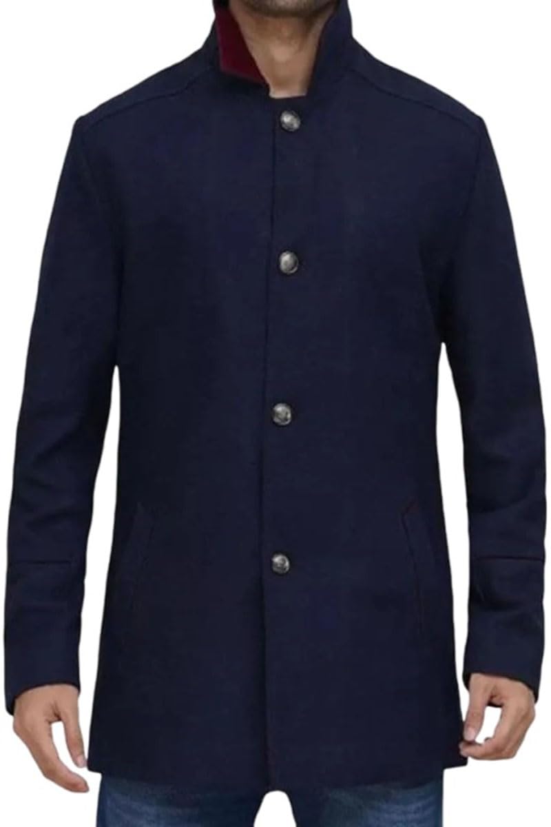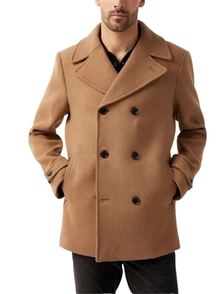 MATERIAL: Classic mens pea coat made of wool blend fabric, lightweight, warm and durable FIT:...