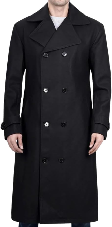ZA Fashion Cloud Men's Premium Trench Black Double Breasted Peacoat Winter Slim Fit Wool Jacket Long Overcoat
