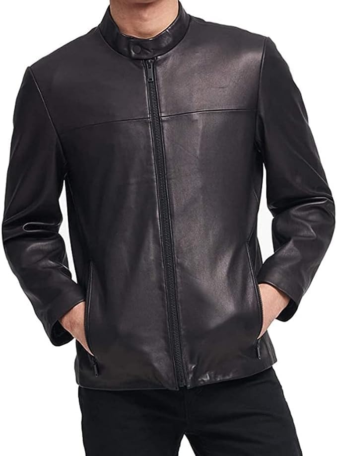 ZA Fashion Cloud Men Real Biker Leather Lambskin Cafe Racer Black Jacket