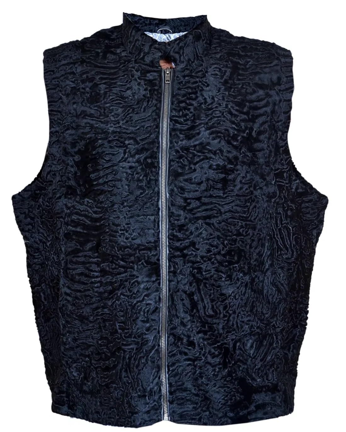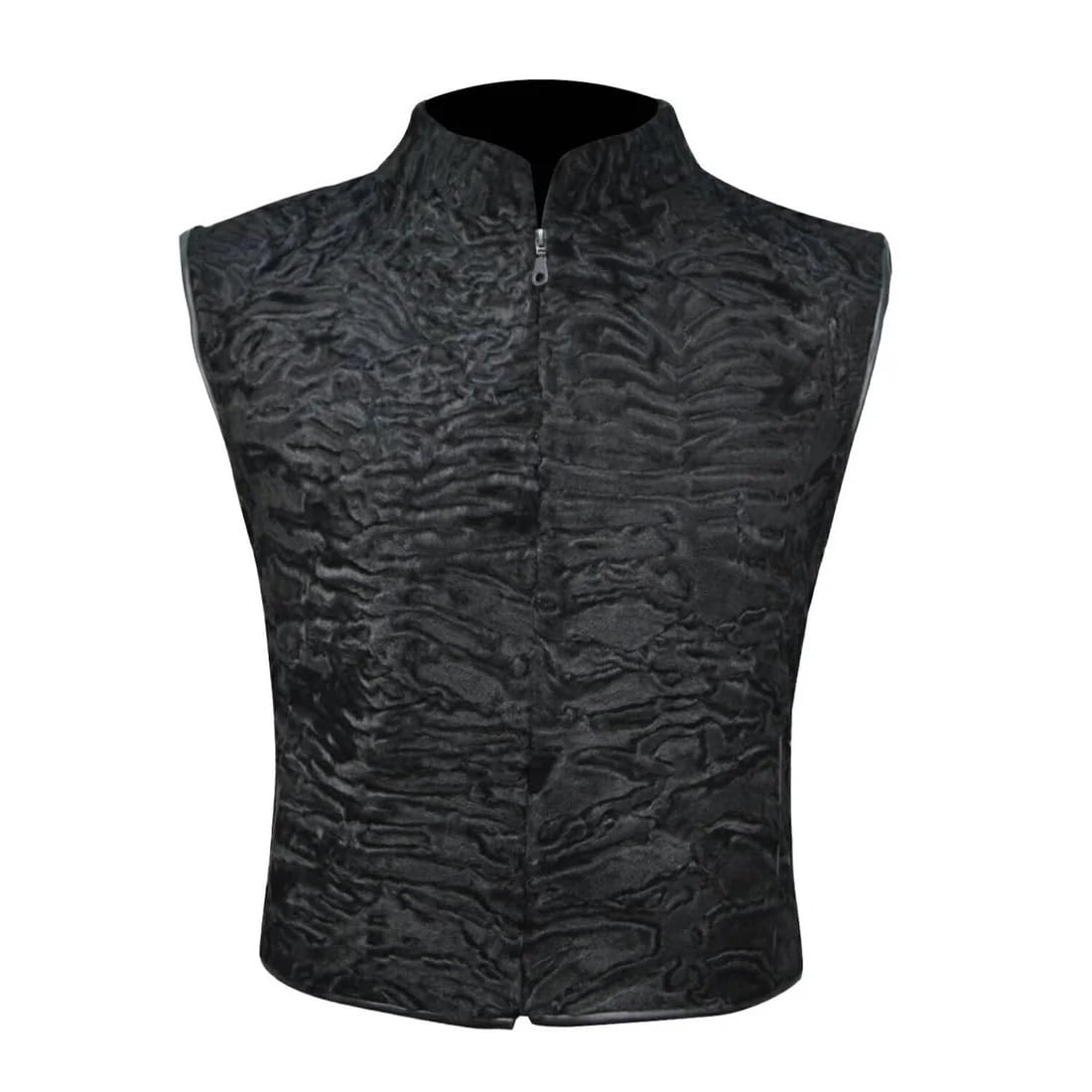 ZA Fashion Cloud Men's Persian Vest Lamb Fur Karakul Sleeveless Zipper Closer Black Winter Waistcoat Jacket