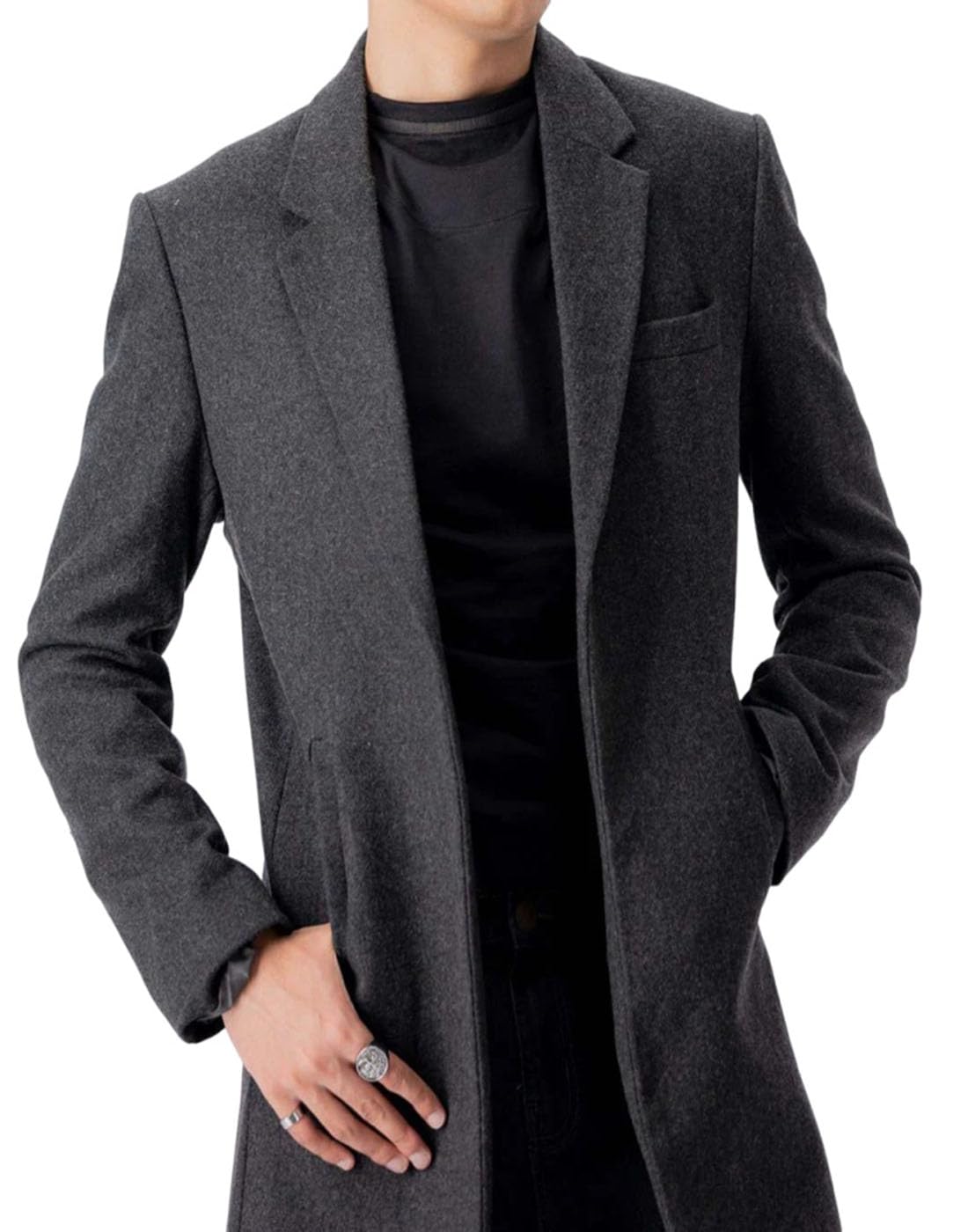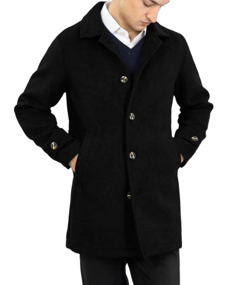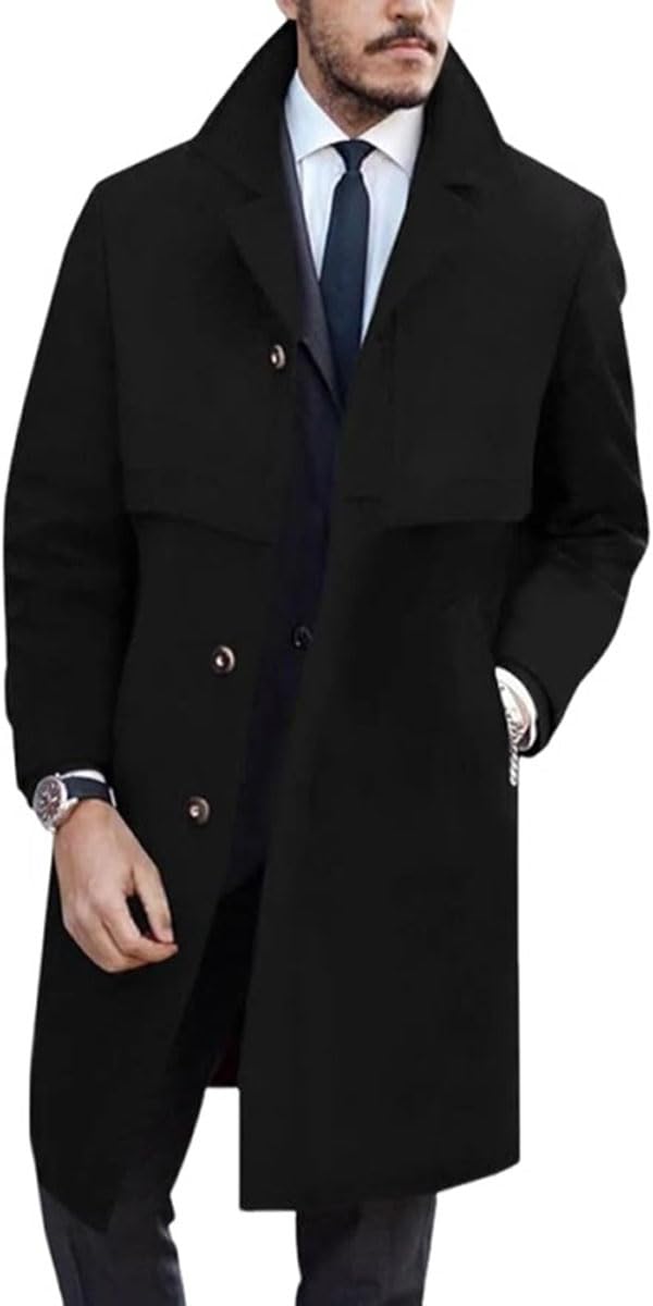 ZA Fashion Cloud Men's Black Casual Trench Slim Fit Notched Collar Long Jacket Overcoat Single Breasted with Pockets Coat