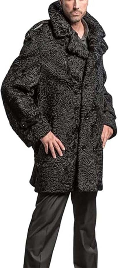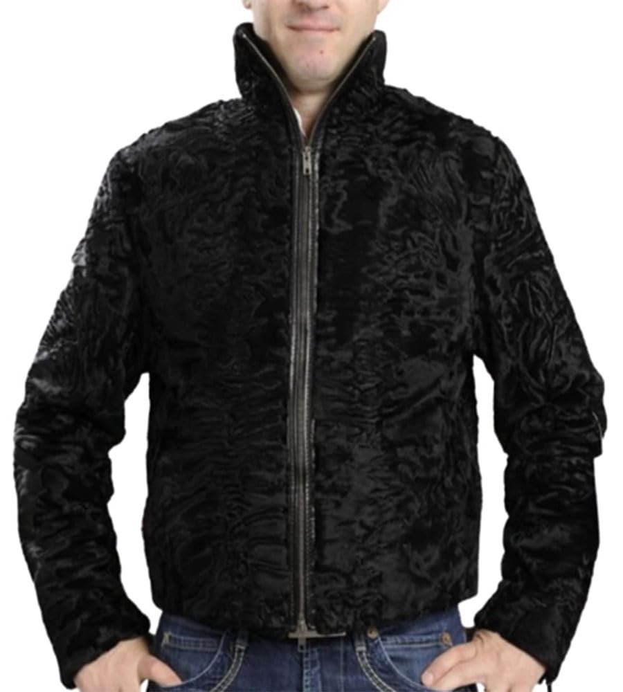 ZA Fashion Cloud Men's Persian Lamb Black Fur Jacket Karakul Coat