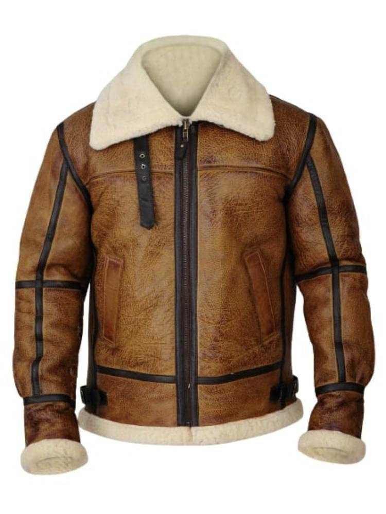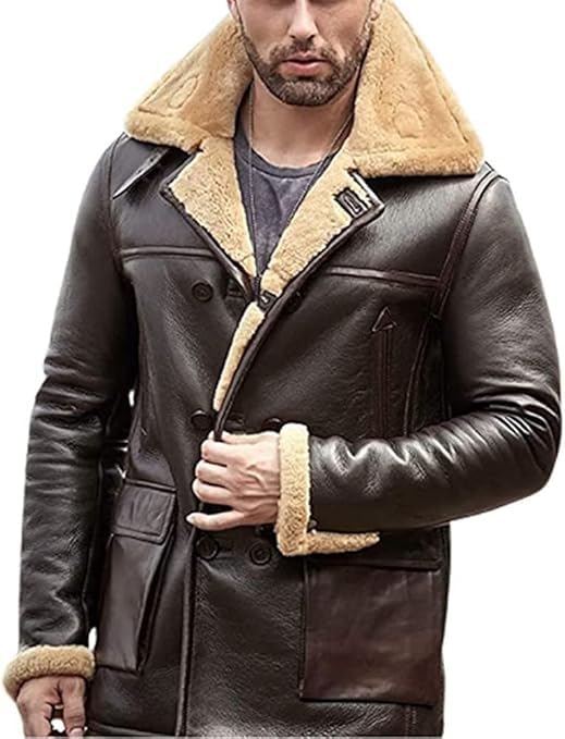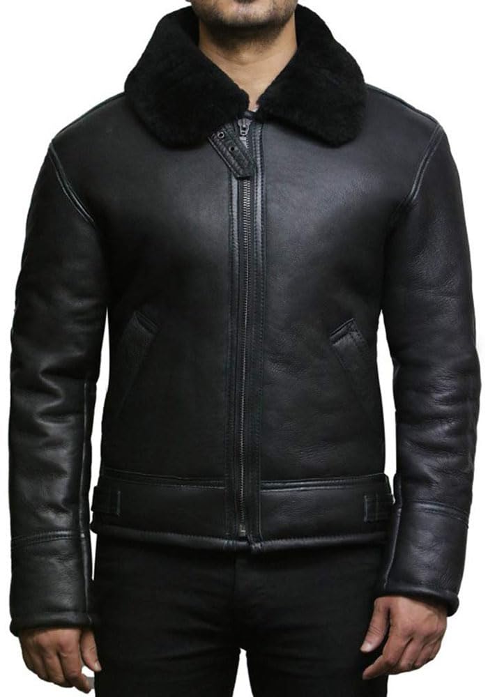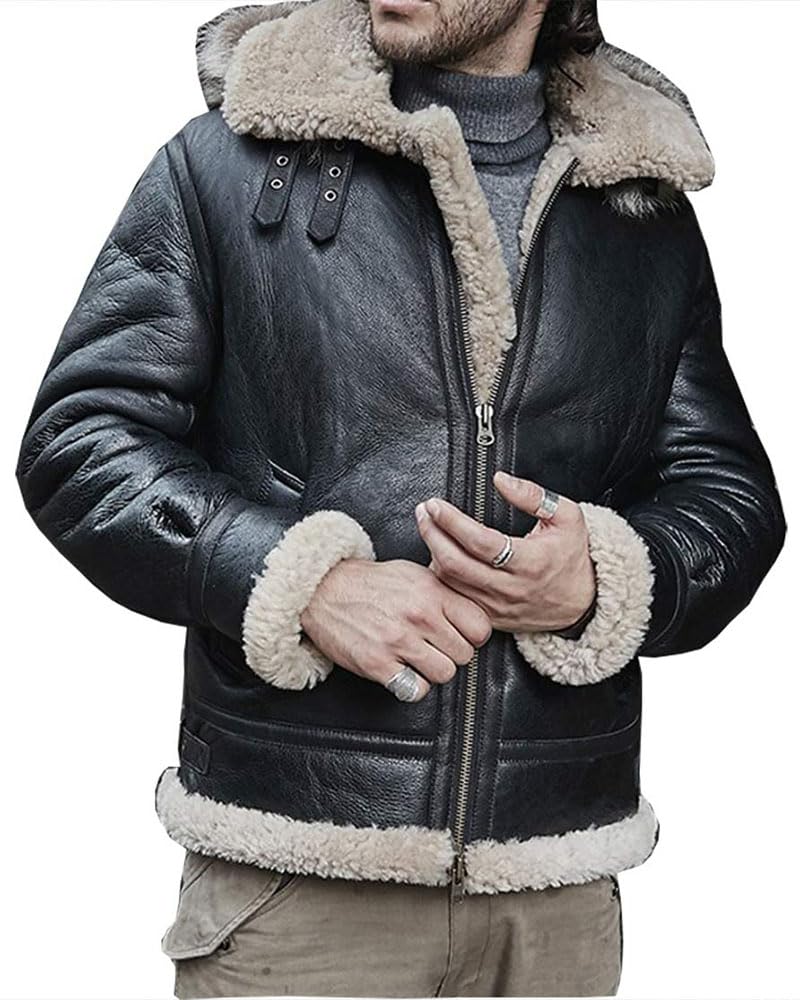 ZA Fashion Cloud Mens B3 Genuine B3 Bomber Flight Shearling Sheepskin Aviator Winter Coat Fur Pilot Leather Jacket