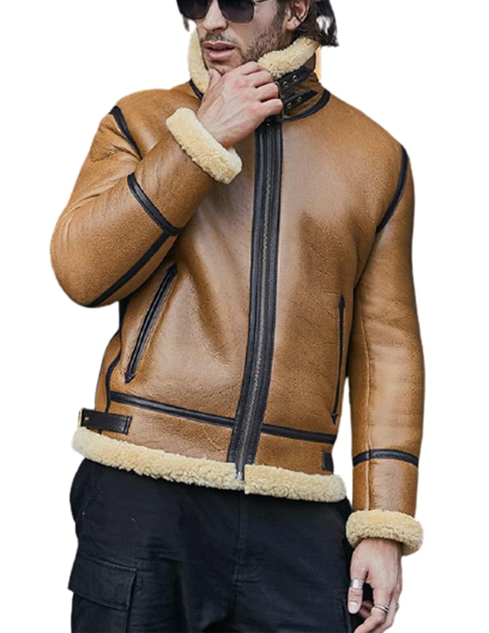 ZA Fashion Cloud Men B3 Bomber Shearling Sheepskin Aviator Flight Leather Fur Jacket Winter Vest