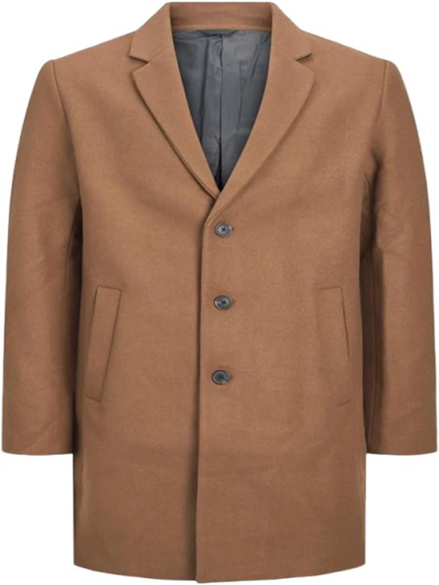 ZA Fashion Cloud Men's Pea Coat Casual Wool Blend Notched Collar Single Breasted Long Warm Winter Trench Brown Overcoat