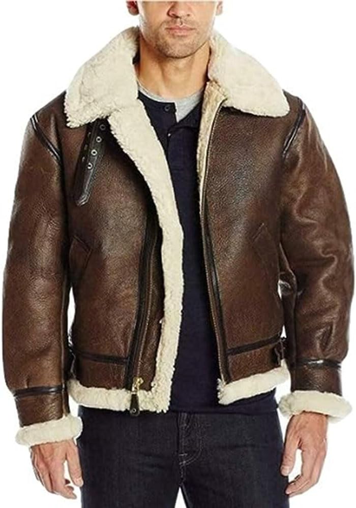 ZA Fashion Cloud Men's B3 Bomber Aviator Shearling Sheepskin Leather Winter Flying Brown Jacket
