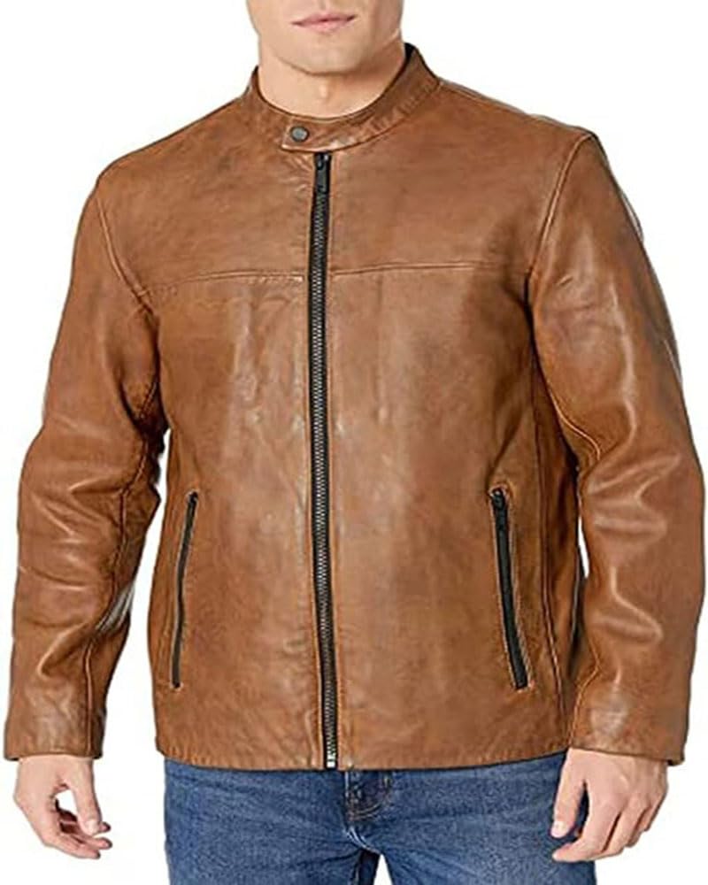 ZA Fashion Cloud Men's Genuine Distressed Racer Lambskin Biker Leather Jacket